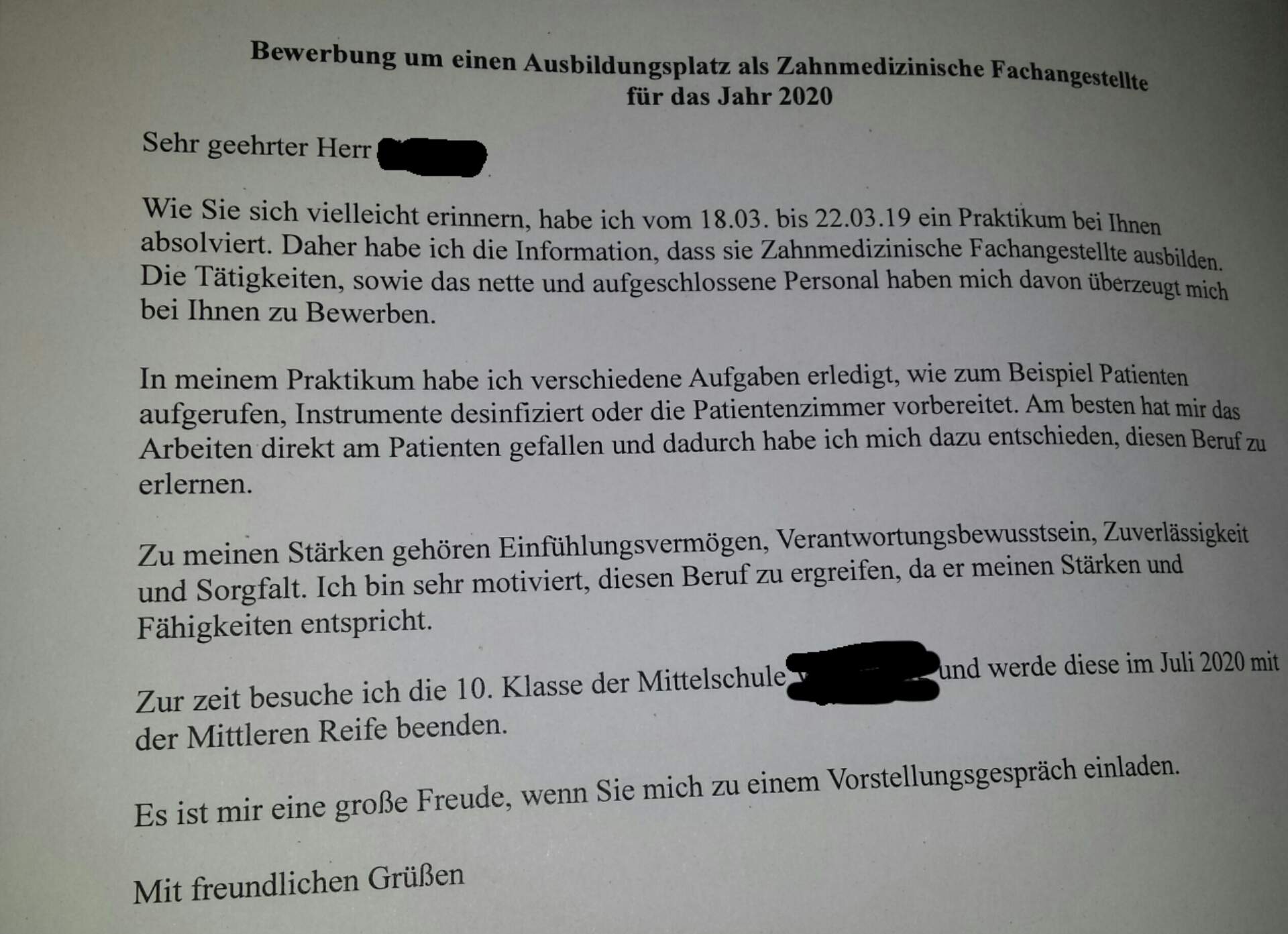 Findet Ihr Diese Bewerbung Als Zahnmedizinische Fachangestellte Akzeptabel Bitte Um Tipps Oder Verbesserungsvorschlage Schule Ausbildung Und Studium Ausbildung